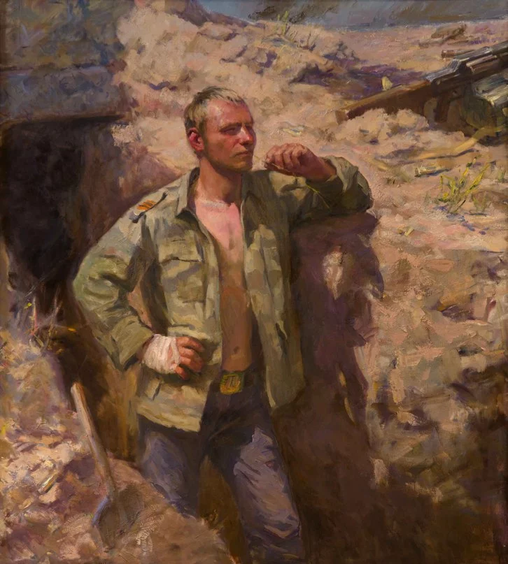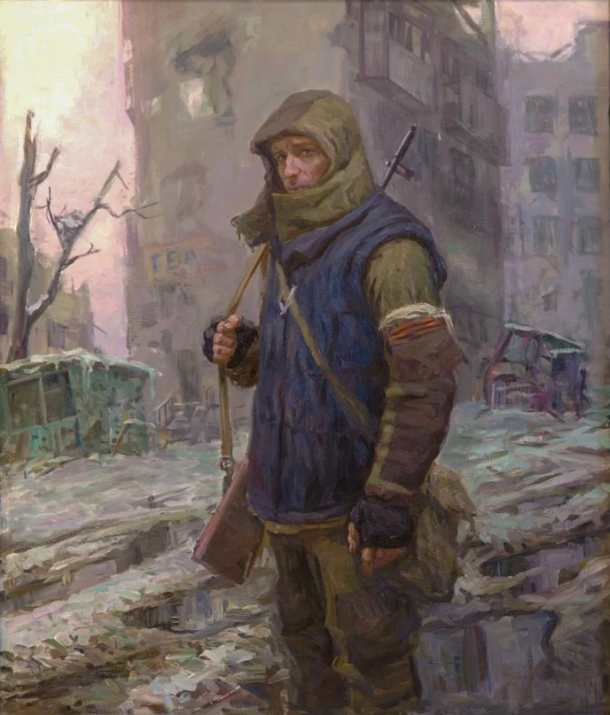 Художник Алексей Крюков, несмотря на свой – достаточно юный для художника-реалиста – возраст, занимается патриотической темой давно. Еще в 2014 году, когда события на Донбассе только начинали показывать свою зловещую суть, 27-летний выпускник РАЖВиЗ Ильи Глазунова отправился прямо в эпицентр страшных событий.