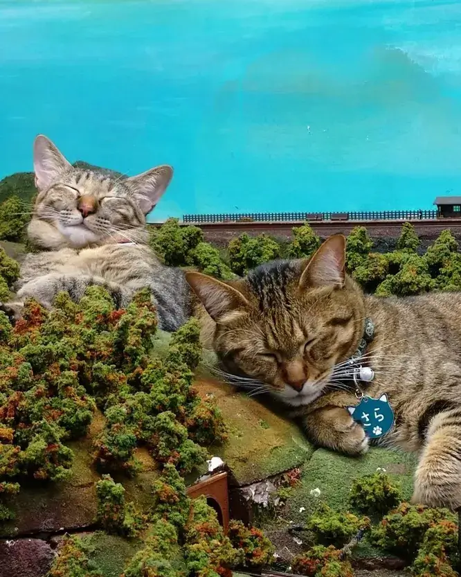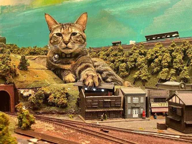 Владельцы Diorama стали держать котов в ресторане, и те не растерялись. Коты сразу же облюбовали миниатюрную железную дорогу. Они стали отдыхать исключительно «в декорациях», чем забавляли все семейство. На фоне диорам коты выглядели великанами. Это выглядело очень смешно и мило – хозяева решили поделиться такой красотой и стали фотографировать кошек, а потом публиковать снимки в инстаграме.