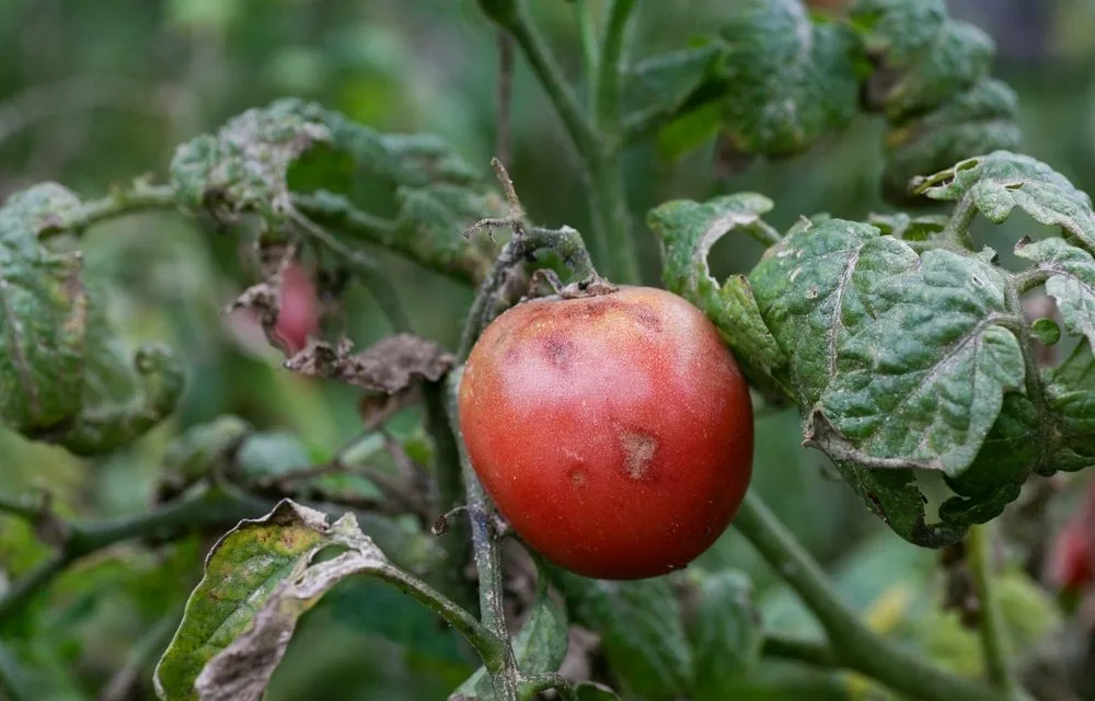Фитофтороз — это грибковая болезнь, которая проявляется на листьях в виде водянистых пятен, а также может поражать плоды. Этот гриб часто развивается во влажных условиях и способствует потере урожая до 50%.