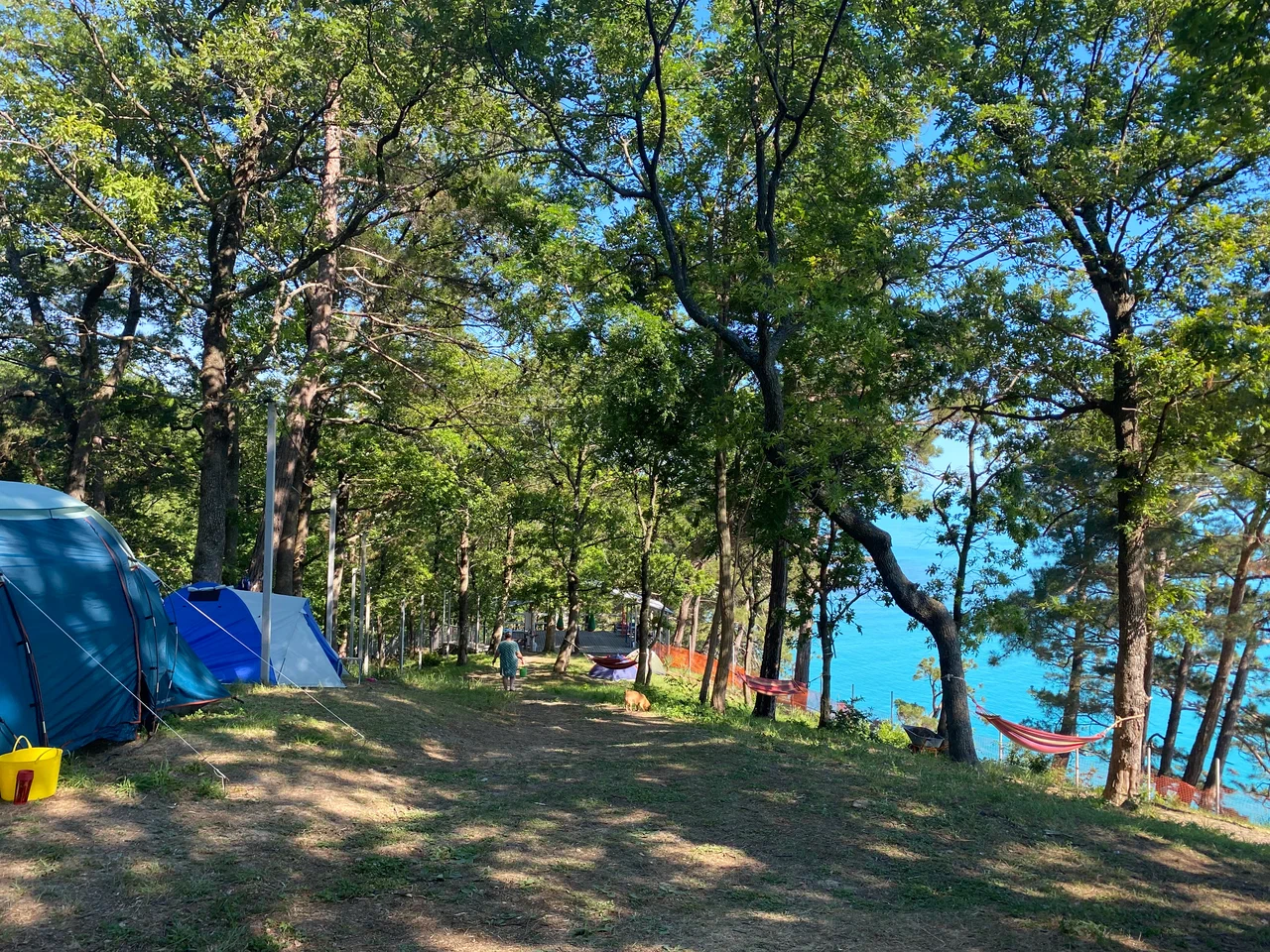 В Туапсинском районе, прямо на побережье Черного моря, расположился небольшой и гостеприимный кемпинг. Площадка для палаток находится на крутом берегу, поэтому для купания и принятия солнечных ванн на уединенном пляже потребуется спуститься по лестнице. Однако в знойные дни можно с удовольствием отдохнуть в тени высоких сосен, покачиваясь в гамаке.