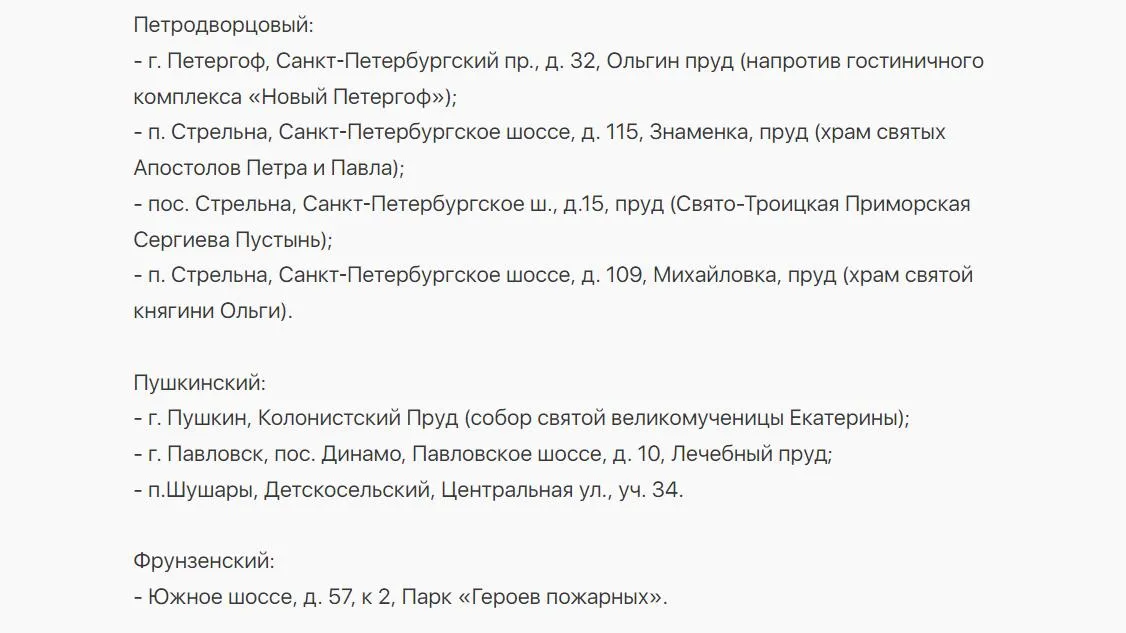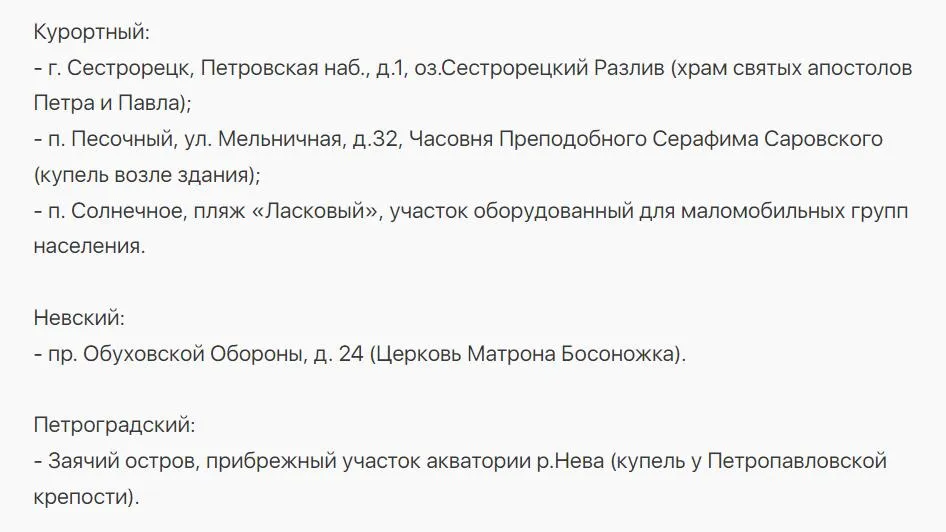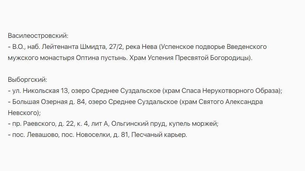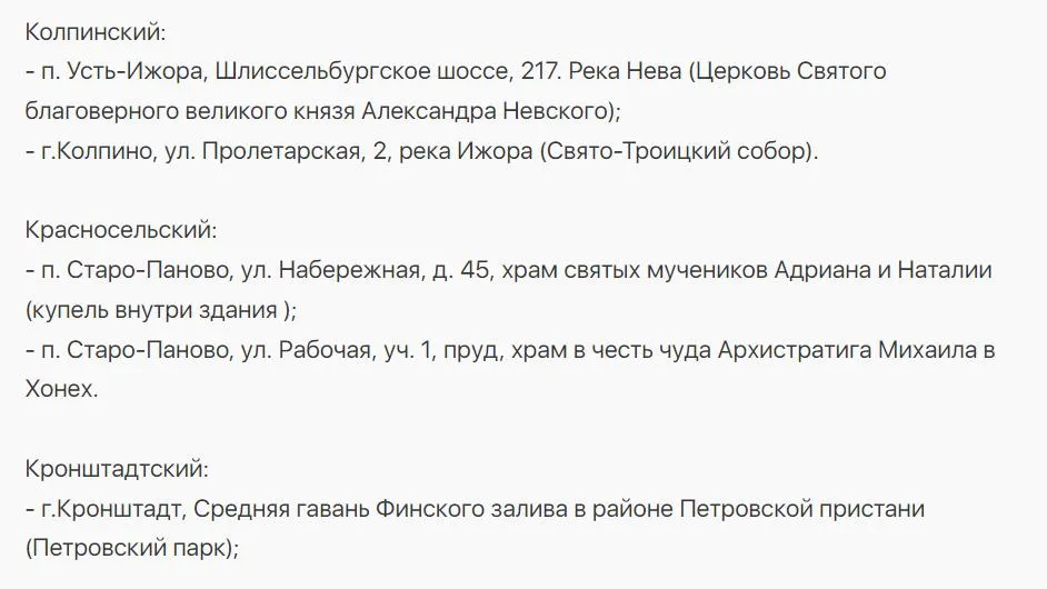 В этом году купели подготовили по 23 адресам. Полный список приведен ниже.