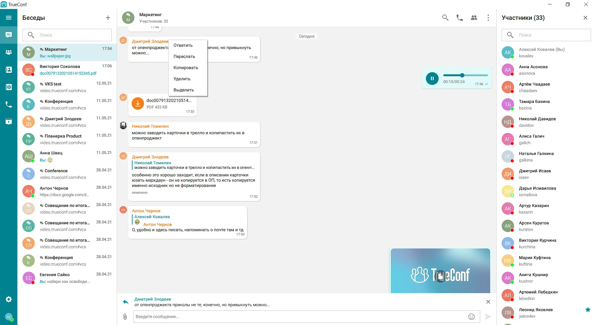 Компания TrueConf разработала мессенджер с ВКС и ИИ