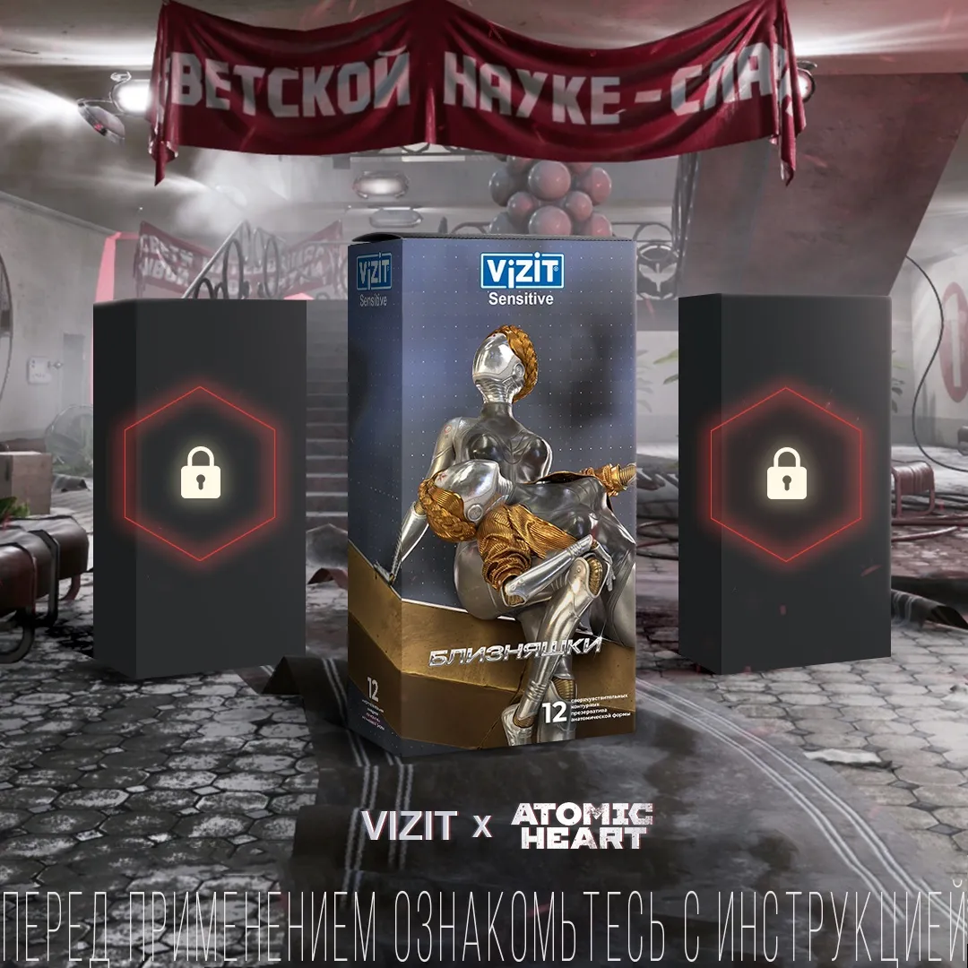 По данным журналистов, лимитированная серия средств контрацепции будет посвящена главным героям игры. Уже появились первые фотографии упаковки презервативов. На ней изображены Близняшки – роботы, встречающие главного героя в самом начале Atomic Heart.